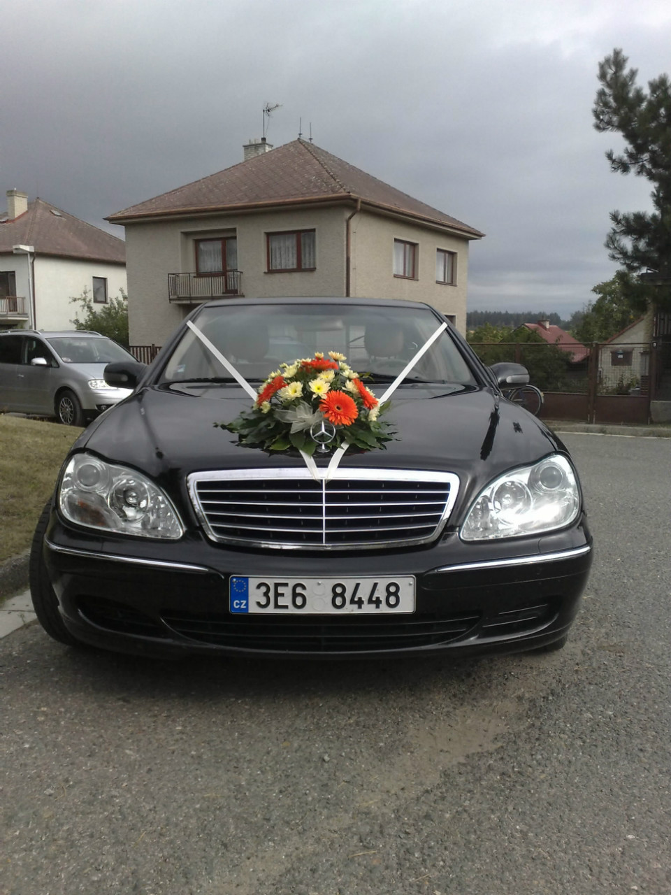 Na svatbu zajišťujeme občerstvení, raut, zákusky, květinovou výzdobu, svatební dekorace a pronájem limuzíny zn. Mercedes